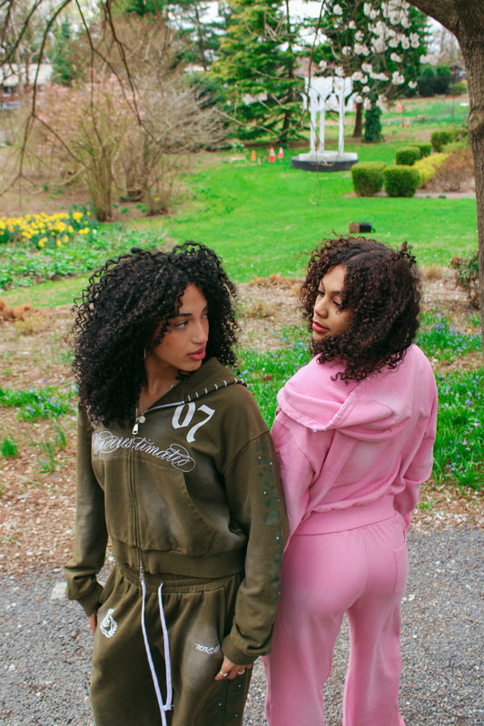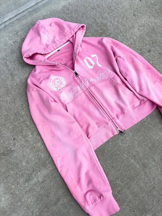 Cropped Rhinestone Zip-up Hoodie (two color-ways available)